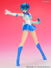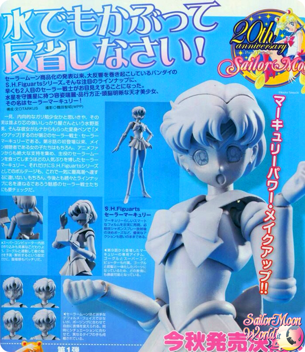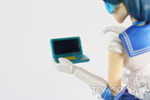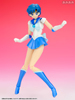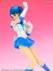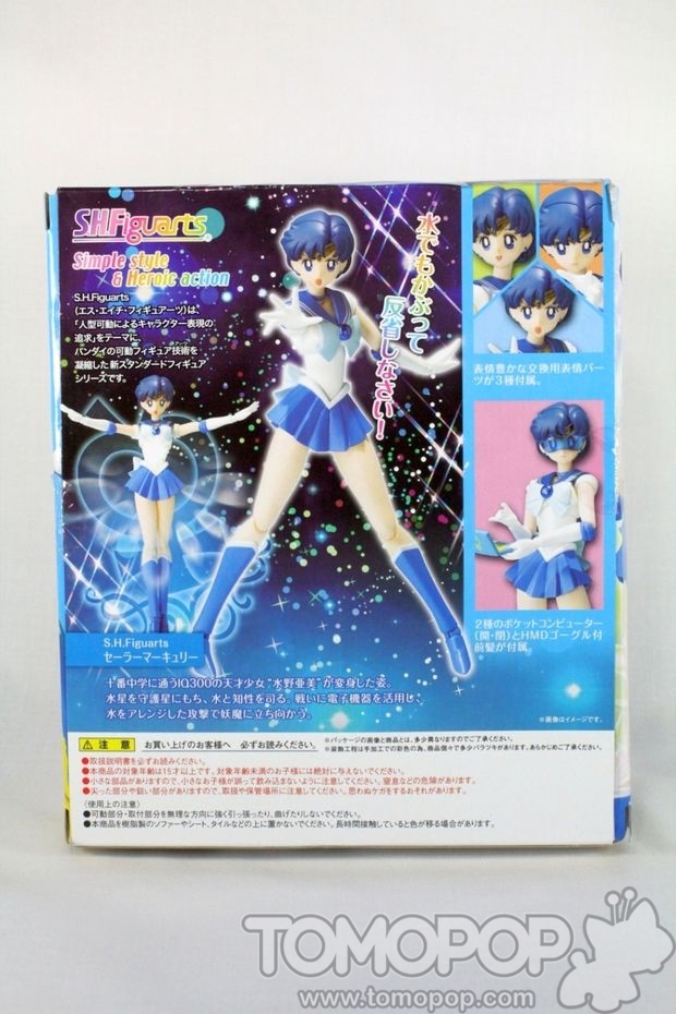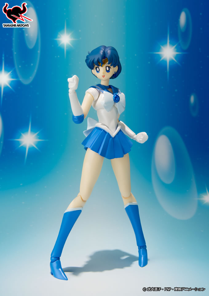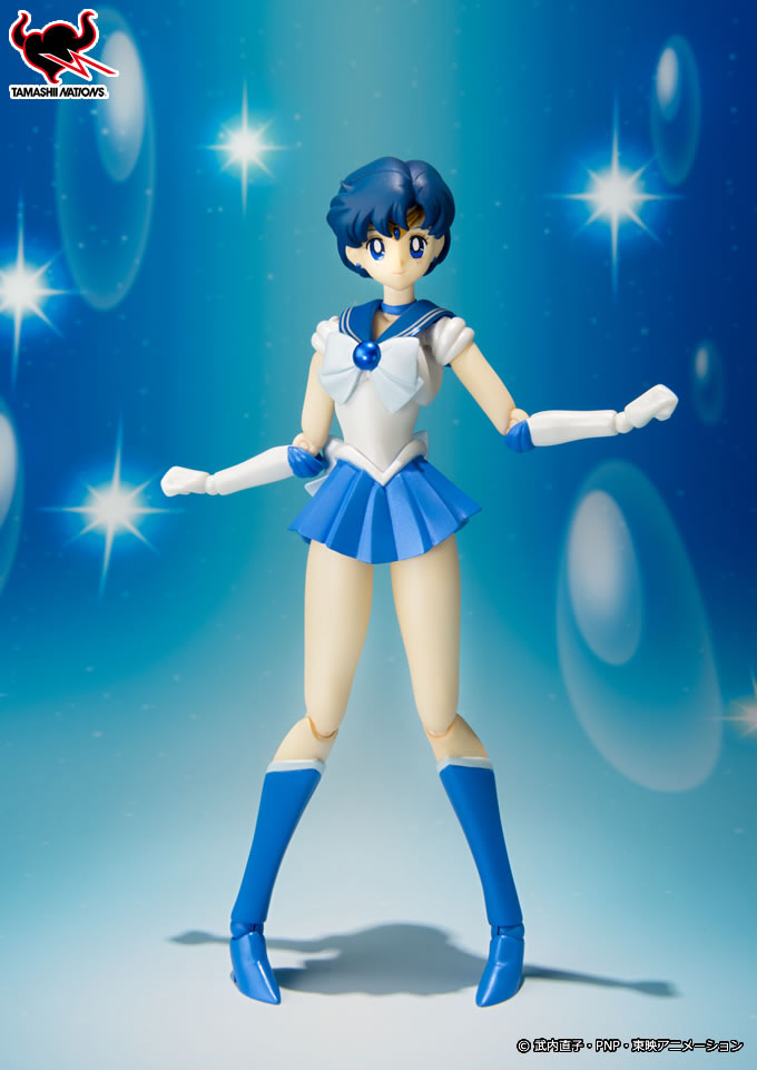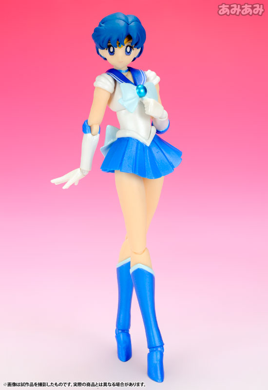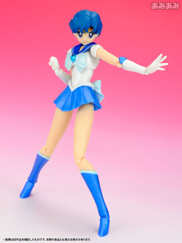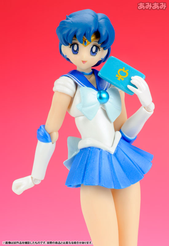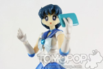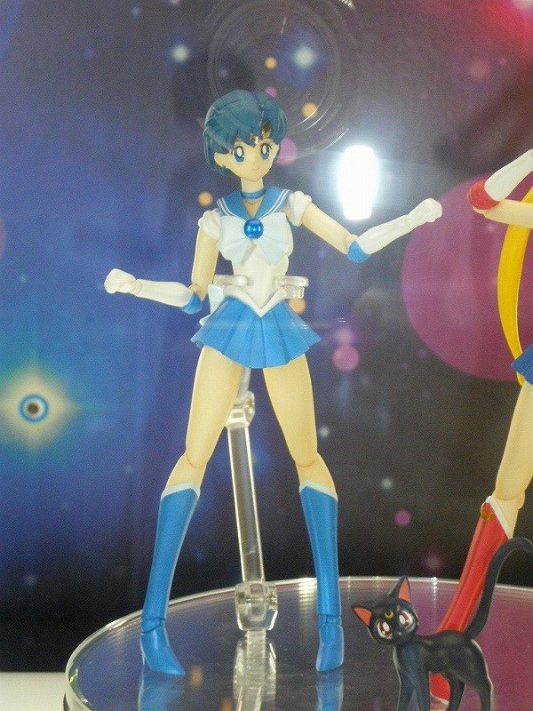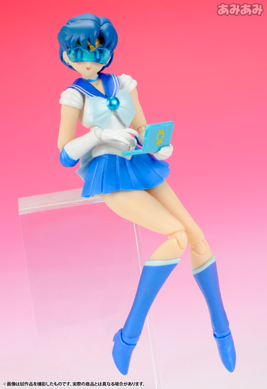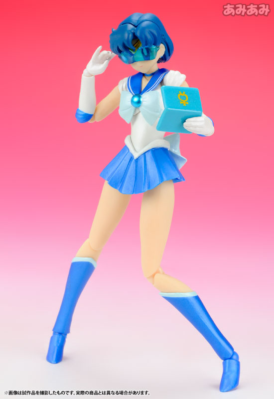 Jeśli chodzi o samą figurkę Sailor Mercury, to jest dobrze wykonana i pomalowana. Niebieska i granatowa farba mają lekko połyskujący odcień, co w świetle daje ciekawe efekty. Możliwości ustawienia figurki są dosyć spore, ruchome elementy to głowa, której można również zmieniać twarz, gogli nie zakłada się oddzielnie, ale również są oddzielną wymienną twarzą, ręce i nogi są zginane w 3 miejscach, a dłonie można wymieniać, regulować można również pas i miejsce pod biustem. Złączki do dłoni są nieco inne, więc nie można ich wymieniać z figurką Sailor Moon. W pasie można rozłożyć figurkę na pół. Spódniczka, ze względu na duży zasięg ruchomości nóg, jest wykonana z bardziej gumowego tworzywa, dzięki czemu można ją odginać i złożona jest z dwóch elementów, przodu i tyłu, które po bokach nachodzą na siebie. Dzięki temu przy szerokim rozstawieniu nóg spódniczka może zwiększyć swój obwód, ale nie będzie widać pęknięcia między częściami. Jedynym mankamentem tej figurki jest to, że fryzura, mimo że krótka, uniemożliwia odgięcie jej do tyłu, gdyż włosy obierają się o kołnierzyk.