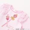 Różowy zestaw z koszulką i spodenkami - na koszulce aplikacja z berłem Sailor Moon i pałeczką Sailor Chibi Moon; dół koszulki jest plisowany, aby przypominał strój wojowniczki; dostępne rozmiary to 80/90 cm; 17 380 jenów (ok. 618 zł).