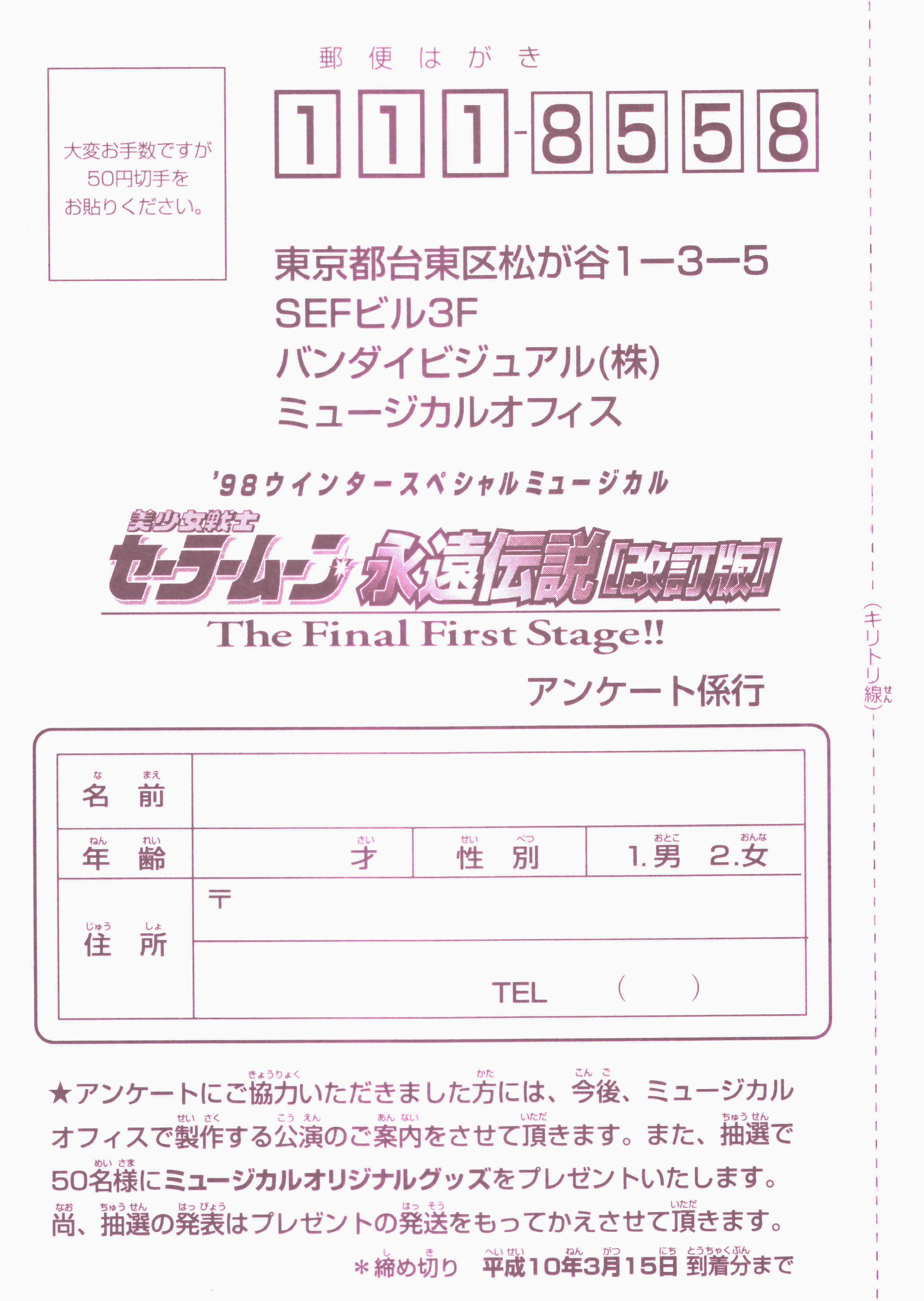 '98 Winter Special Musical Bishoujo Senshi Sailor Moon Eien Denstetsu Kaiteiban The Final First Stage!!
