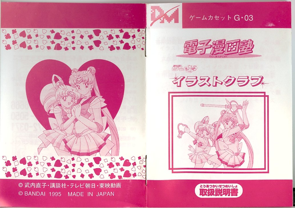 Gierka została wydana w 1995 roku na konsolę Design Master Denshi Mangajuku. Konsola była pierwszym małym przenośnym urządzeniem z ekranem dotykowym. Do ekranu używało się rysika. Konsola służy do rysowania i można za jej pomocą stworzyć krótkie animacje lub układanki z własnych rysunków. Co dokładnie można było zrobić po włożeniu kasety Sailor Moon, nie wiem, nie znalazłam żadnych zdjęć czy opisów.