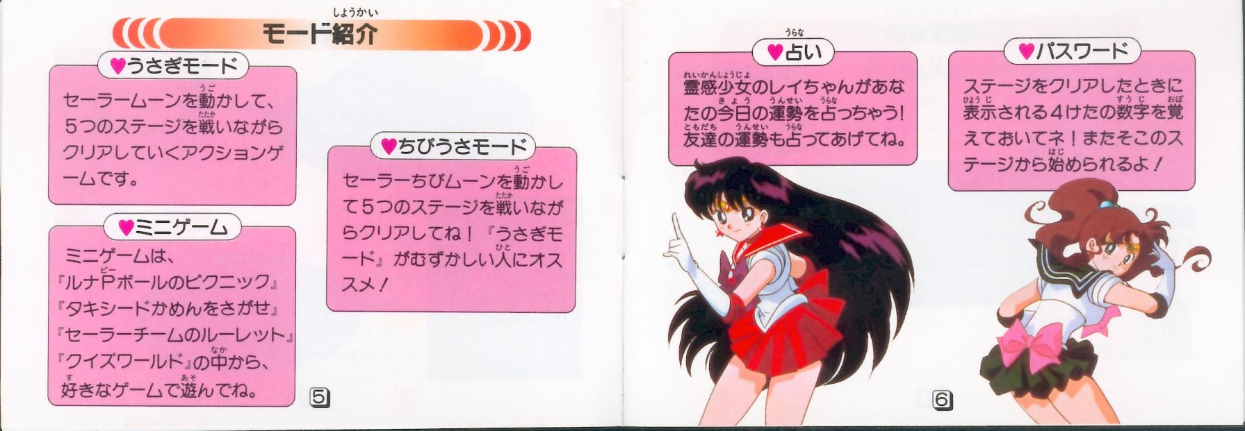 Gra została wydana 27 stycznia 1995 roku przez Bandai. To platformówka, w której mamy do wyboru dwie postacie, Sailor Moon w trybie normalnym oraz Sailor Chibi Moon w trybie łatwym. Sailor Chibi wydaje się silniejsza, gdyż może jednym atakiem zniszczyć większość przeciwników, Sailor Moon najczęściej potrzeba dwóch ataków. Pokonanie jednym atakiem w przypadku Sailor Moon następuje dopiero po przemianie w Super Sailor Moon. Gra składa się z pięciu poziomów, a każdy z nich podzielony jest na trzy części. Podczas przechodzenia poziomu można zbierać Talizmany, po zebraniu trzech Sailor Moon zamienia się w Super Sailor Moon przed walką z bossem danego poziomu. Po każdym poziomie pojawiają się mini gry.