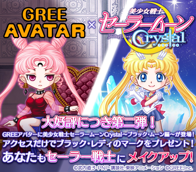 Od 7 grudnia 2015 do 29 stycznia 2016 trwała druga współpraca z grą Gree Avatar. W tej współpracy pojawiły się stroje i przedmioty związane z Rodziną Czarnego Księżyca, takie jak suknia Czarnej Damy czy twarze Sailor Pluto lub Diany. Za samo wejście do gry otrzymywało się znak Czarnego Księżyca. Cena to 300 monet (waluta w grze). Przy okazji ponownie do kupienia były akcesoria z pierwszej współpracy.