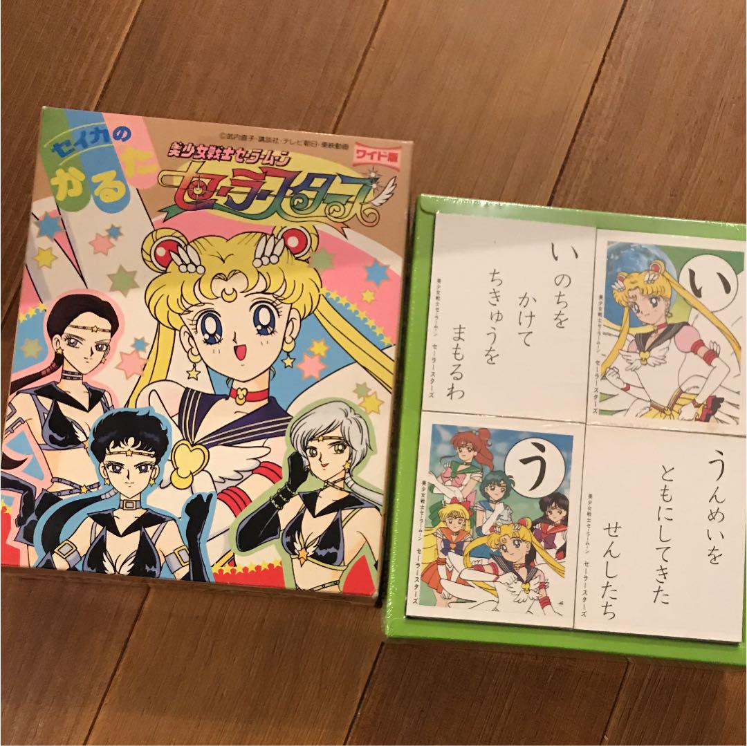 Gra karciana. Zestaw zawiera dwa zestawy kart po 45 sztuk. Posiada grafikę powiązaną z serią Sailor Stars.