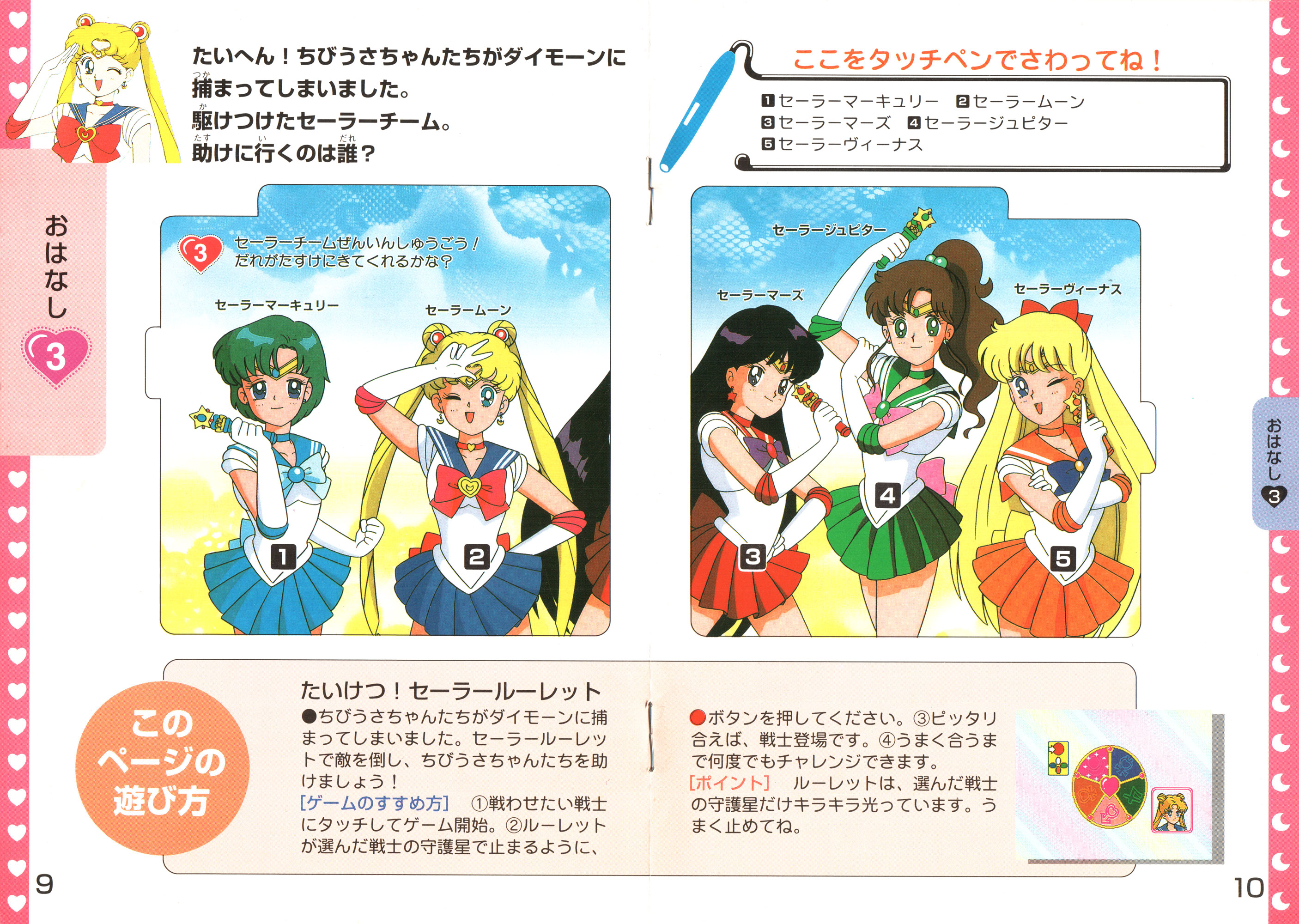 Gra została wydana w lipcu 1994 roku. Jest to typowa gra dla dzieci, gdzie można kolorować, zgadywać i przebierać postacie. Jako wrogowie z serii Sailor Moon S pojawiają się Kaolinite i daimon Nekonel. Można przeciwko nim walczyć. Cartridge gry jest w postaci książeczki, którą umieszcza się w konsoli. Poszczególne poziomy znajdują się 5 stronach, każda strona ma aktywne obszary, które odsyłają nas do różnych zadań. Obszary dotyka się specjalnym długopisem dołączonym do konsoli.