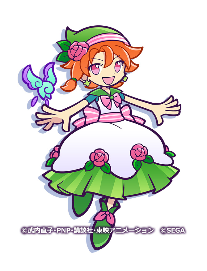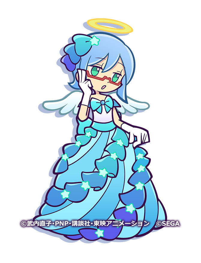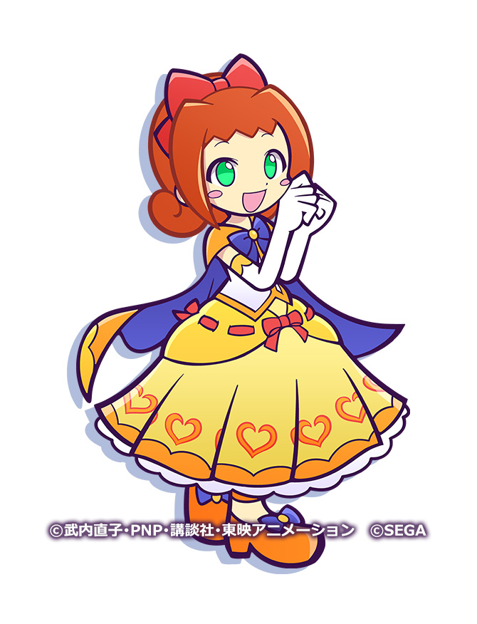 Postacie z Puyo Puyo Quest w strojach w kolorach inner senshi.