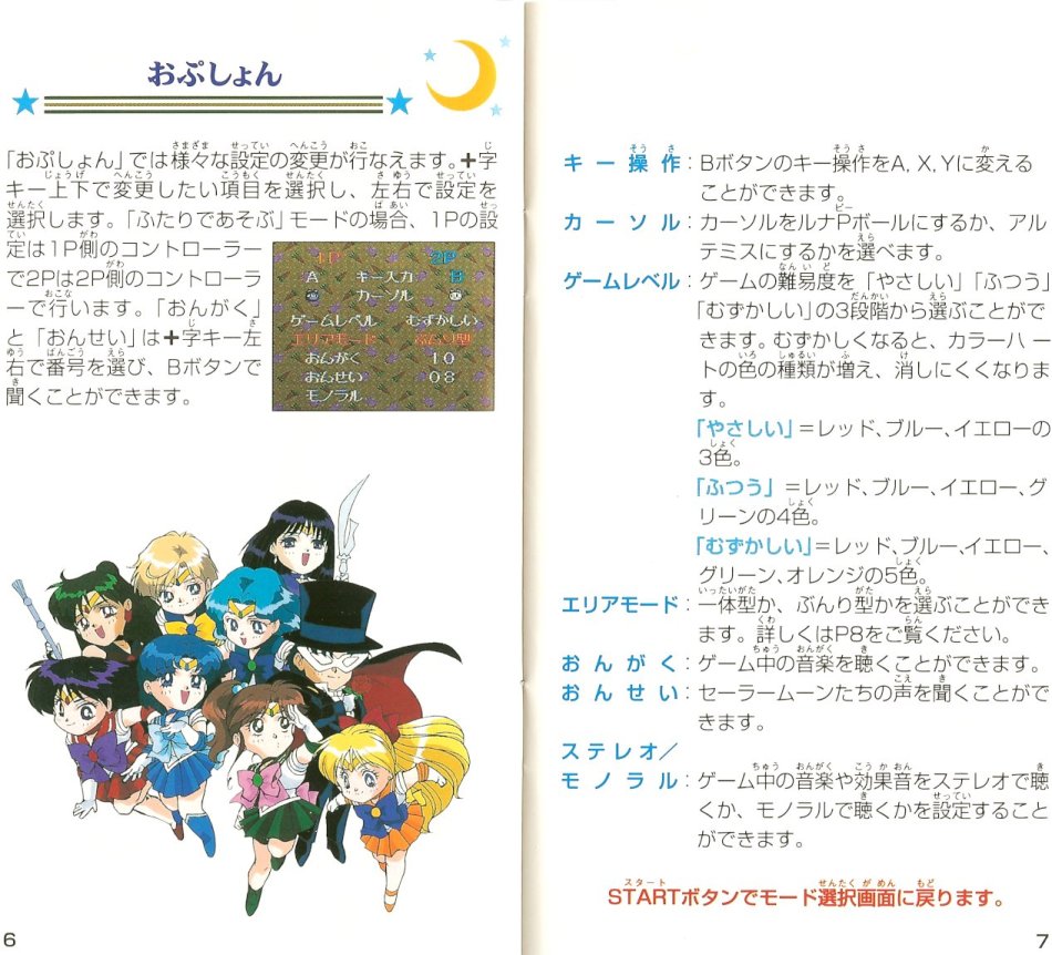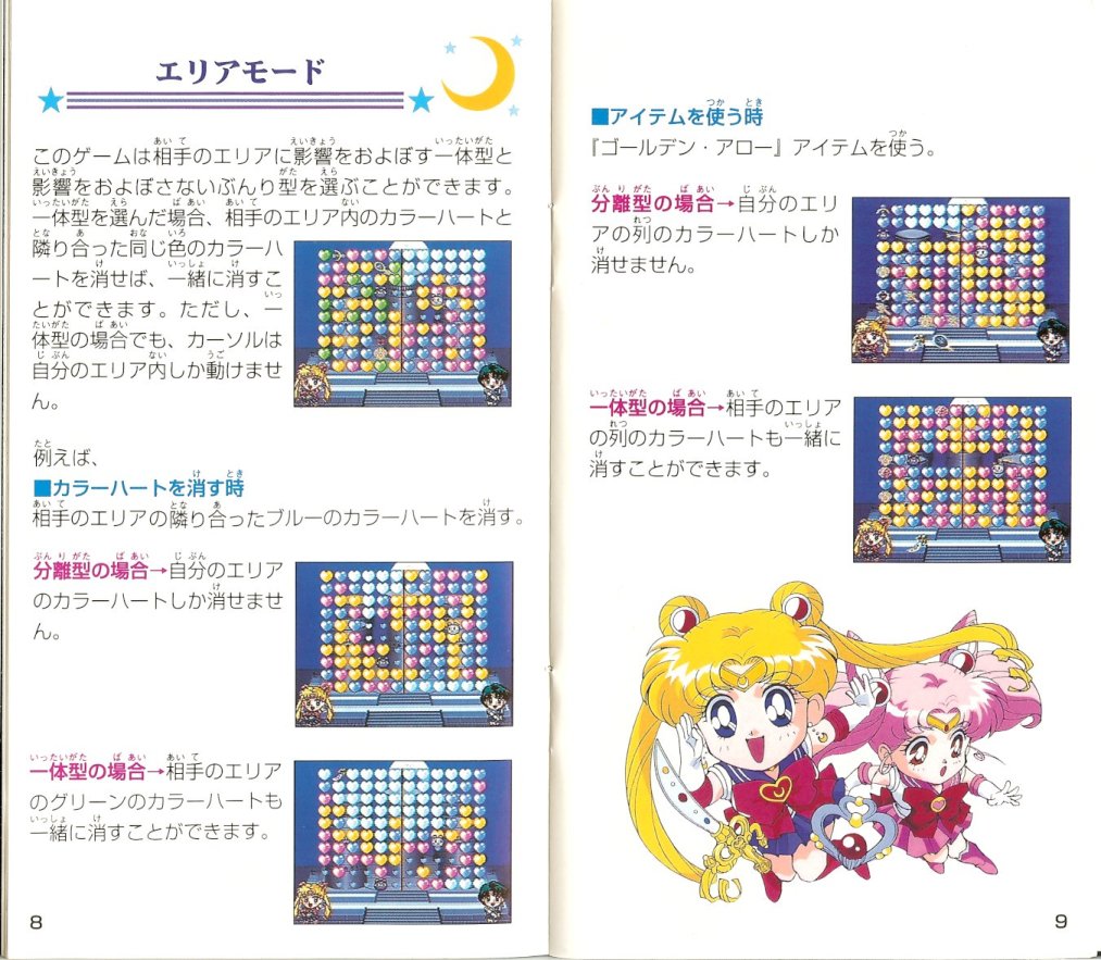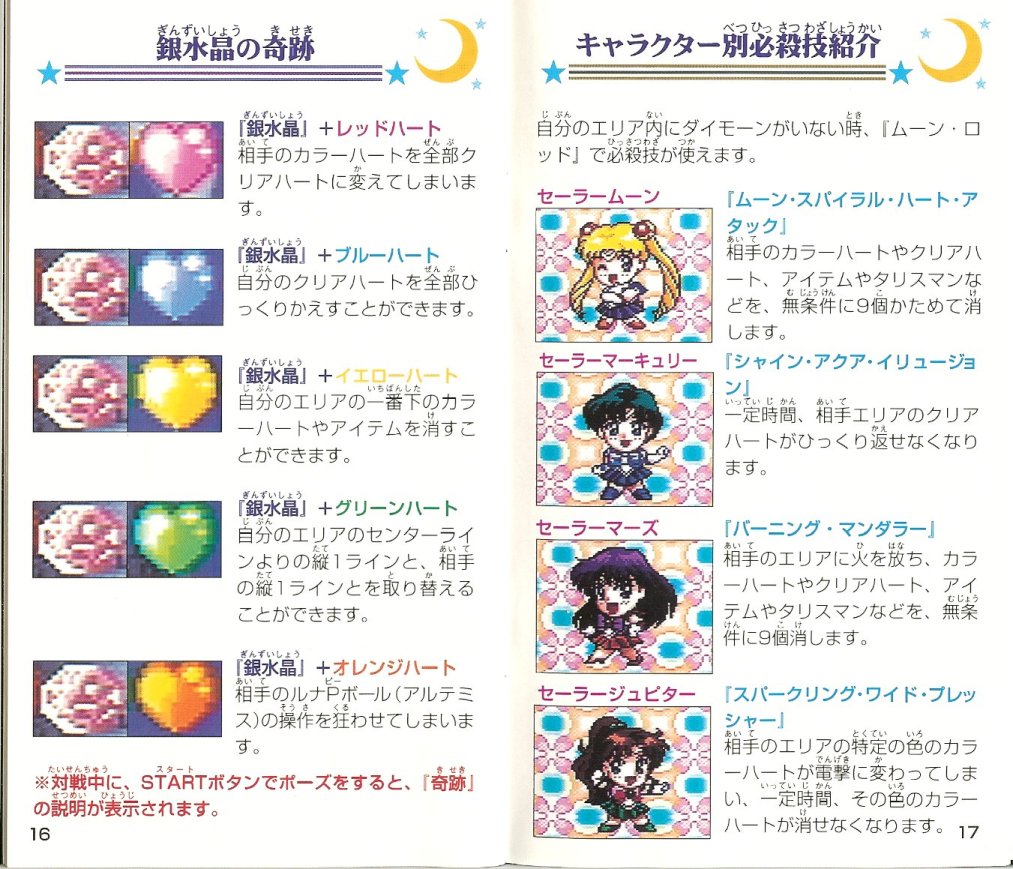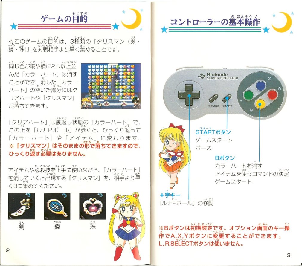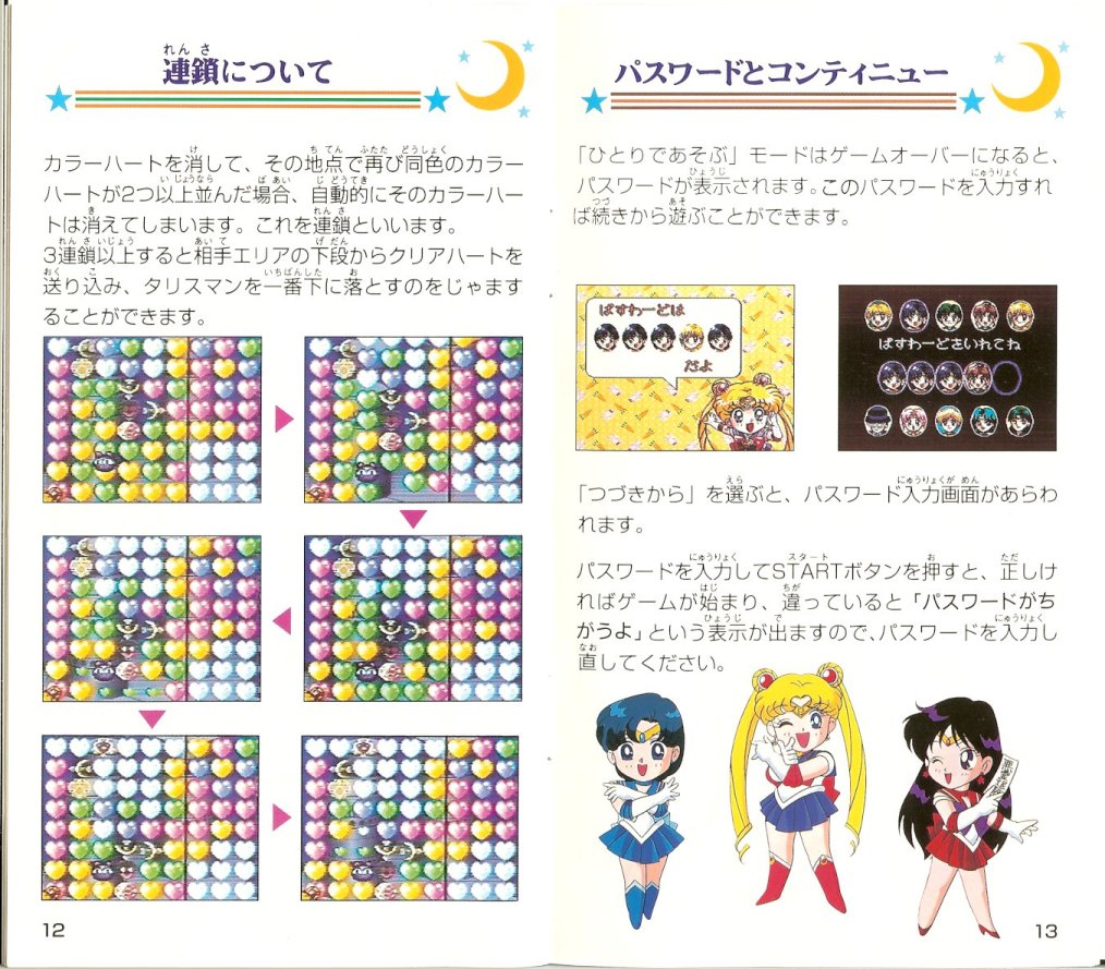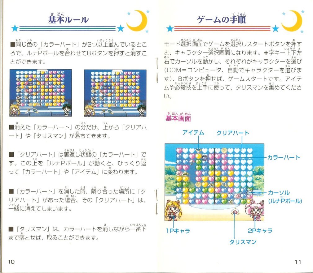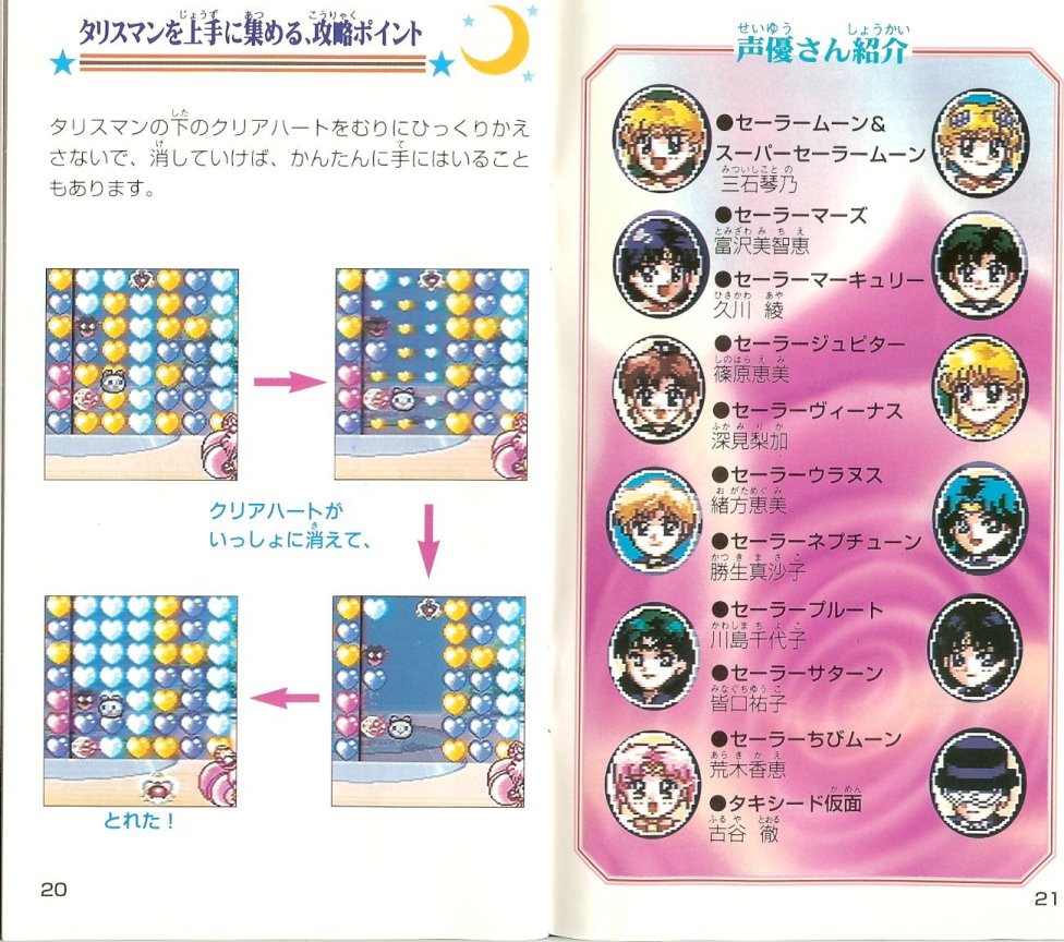 Gra została wydana 24 lutego 1995 roku przez Bandai. Jest to typowa gra, w której musimy wyczyścić co najmniej trzy klocki tego samego koloru. W przypadku tej gry są to kolorowe serca, a głównym celem jest zebranie Trzech Talizmanów, które schodzą na dół po wyczyszczeniu znajdujących się pod mini serc. Talizmany należy zebrać szybciej, niż nasz przeciwnik. Na planszy oprócz Talizmanów pojawiają się również inne przedmioty, które mogą być dobre lub złe. W grze można grać wszystkimi inner i outer senshi oraz Super Sailor Moon, Sailor Chibi Moon i Tuxedo Kamen.