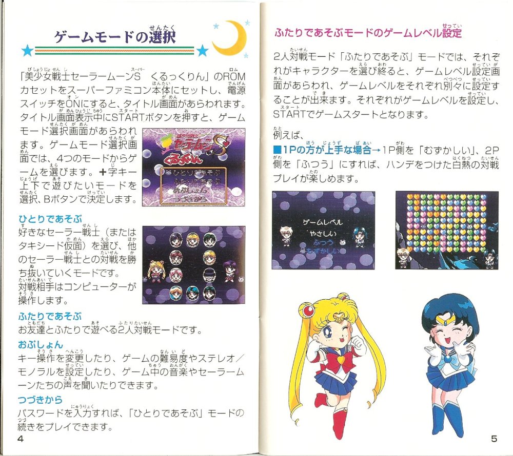 - Super Sailor Moon - postać ukryta; niszczy większą grupę wybranych losowo klocków na planszy przeciwnika, niż Sailor Moon.