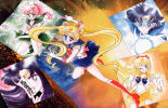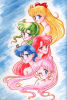 Notatka Naoko: Chciałam narysować włosy dziewczyn w ich kolorach, ale kiedy zaczęłam kolorować włosy Usagi-chan na różowo okazało się, że ten kolor zupełnie do niej nie pasuje. Potem tego żałowałam.