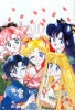 Notatka Naoko: Narysowałam to na okładkę magazynu Nakayoshi. Na okładki są sprecyzowane rozmiary i pozy postaci. Poza Sailor Moon jest w porządku, ale pozy pozostałych wojowniczek miały być bardziej