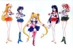 Notatka Naoko: Minako-chan jest w stroju Sailor V, ale to tylko dlatego, że nie pojawiła się jeszcze jako Sailor Venus. Wszystkie pozy mi się podobają, ale kiedy teraz na nie spoglądam, wydają mi