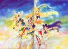 Notatka Naoko: Na tym rysunku pozostałe wojowniczki mogą zobaczyć Pluto i są bardziej zdeterminowane do walki. Podobają mi się kolory w tle, ale koleżanka powiedziała, że są niespotykane. Ten rysunek