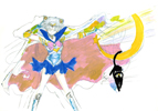 Notatka Naoko: To prawdopodobnie pierwszy kolorowy rysunek Sailor Moon. To próbny kolorowy rysunek na okładkę pierwszego rozdziału.