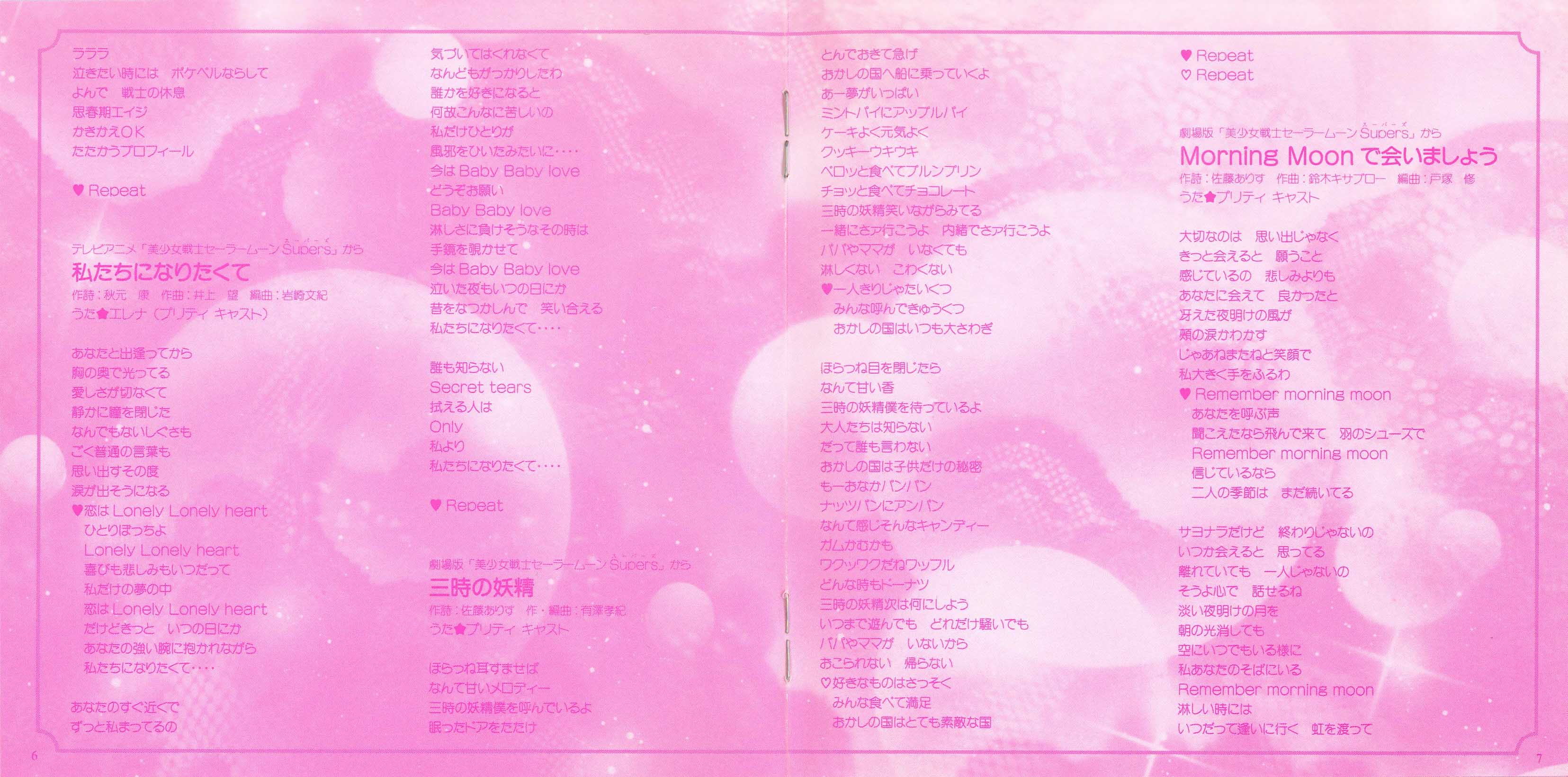 | Tytuł | 美少女戦士セーラームーン Best Song Collection Pretty Cast Bishoujo Senshi Sailor Moon Best Song Collection Pretty Cast Piękna wojowniczka Sailor Moon Kolekcja najlepszych piosenek śpiewanych przez Pretty Cast |