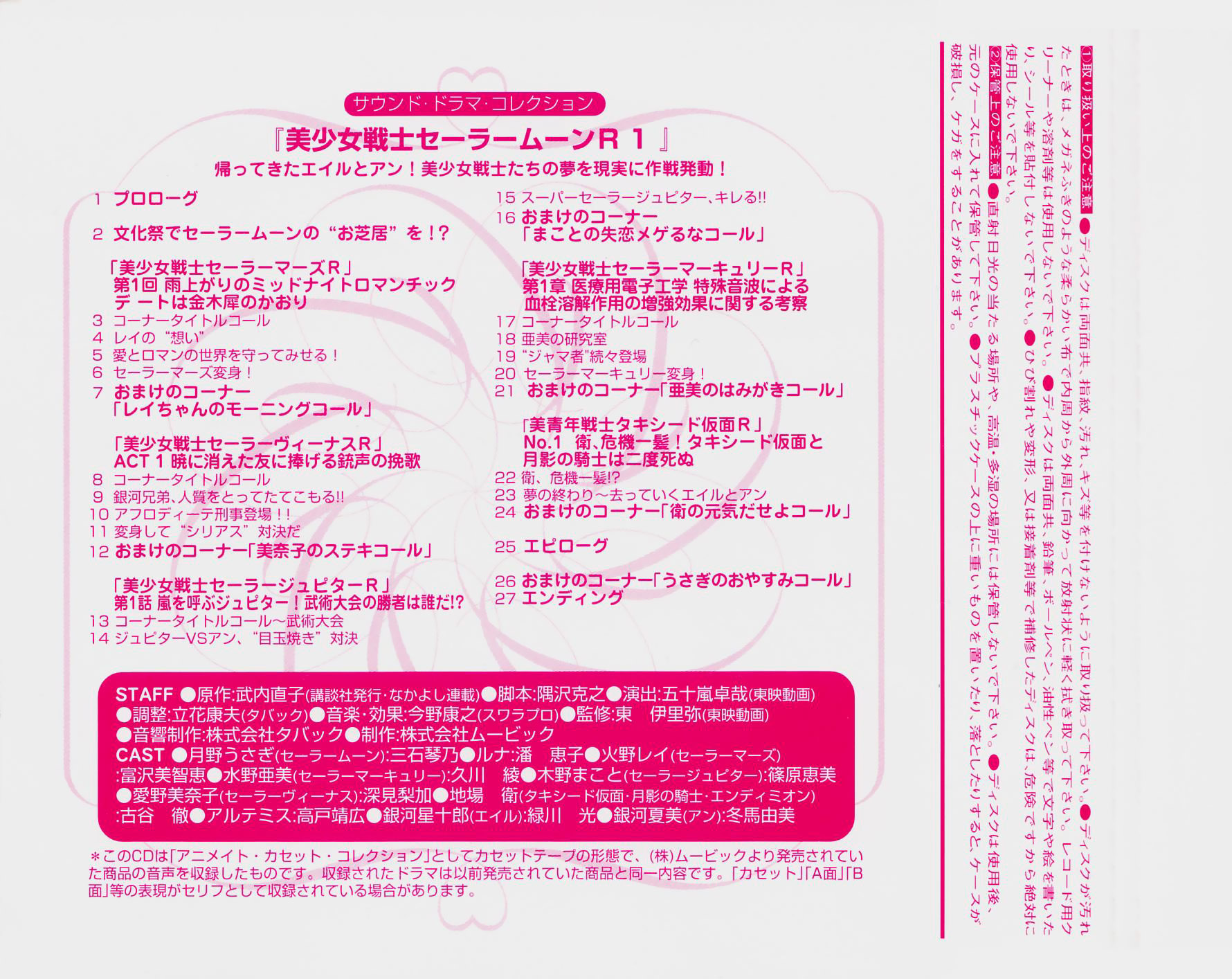 美少女戦士セーラームーンR サウンド・ドラマ・コレクション1 - 帰ってきたエイルとアン! 美少女戦士たちの夢を現実に作戦発動! Bishoujo Senshi Sailor Moon R Sound Drama Collection 3 Kaette Kita Ail to An! Bishoujo Senshitachi no Yume o Genjitsu ni Sakusen Hatsudou! Piękna wojowniczka Sailor Moon R- Kolekcja słuchowisk 1 Powrót Aila i An! Operacja zrealizowania marzeń wojowniczek! |