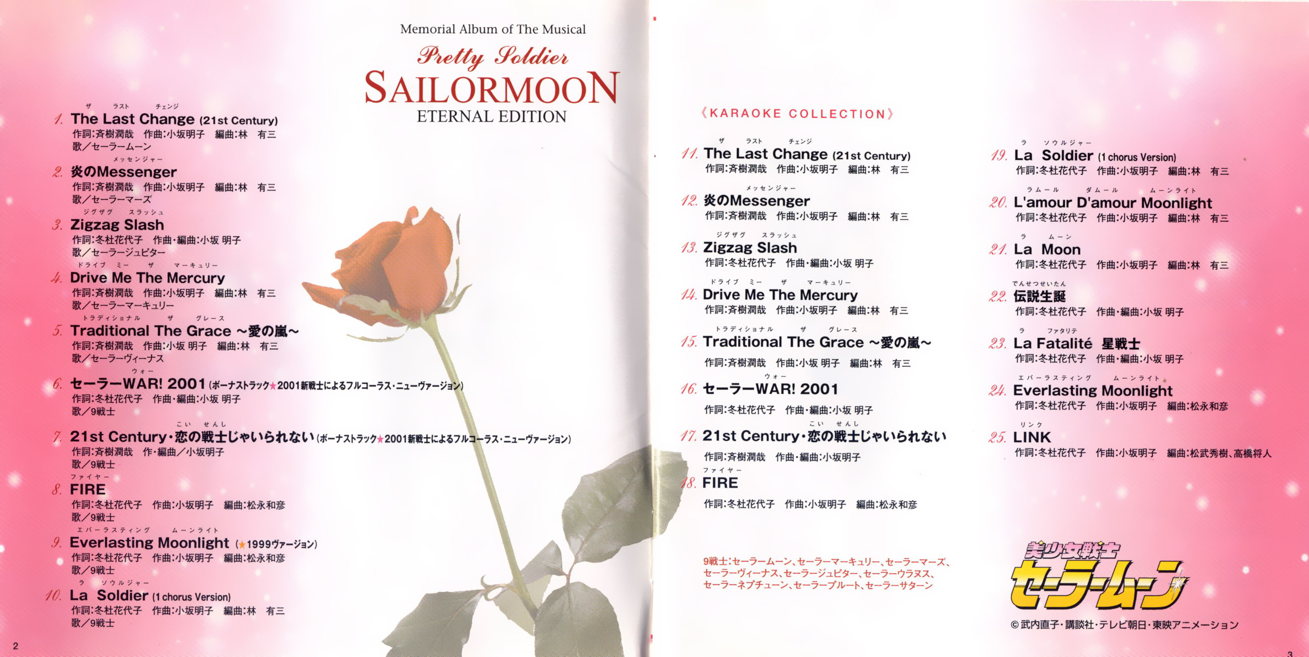 21st Century・恋の戦士じゃいられない (2001年冬キャスト新録音) 21st Century - Koi no Senshi ja Irarenai (2001 nen Fuyu Cast Shin Rokuon) 21 wiek - Wojowniczki miłości nie poddają się (wersja z nowego nagrania z obsadą z zimowego musicalu z 2001 roku) |