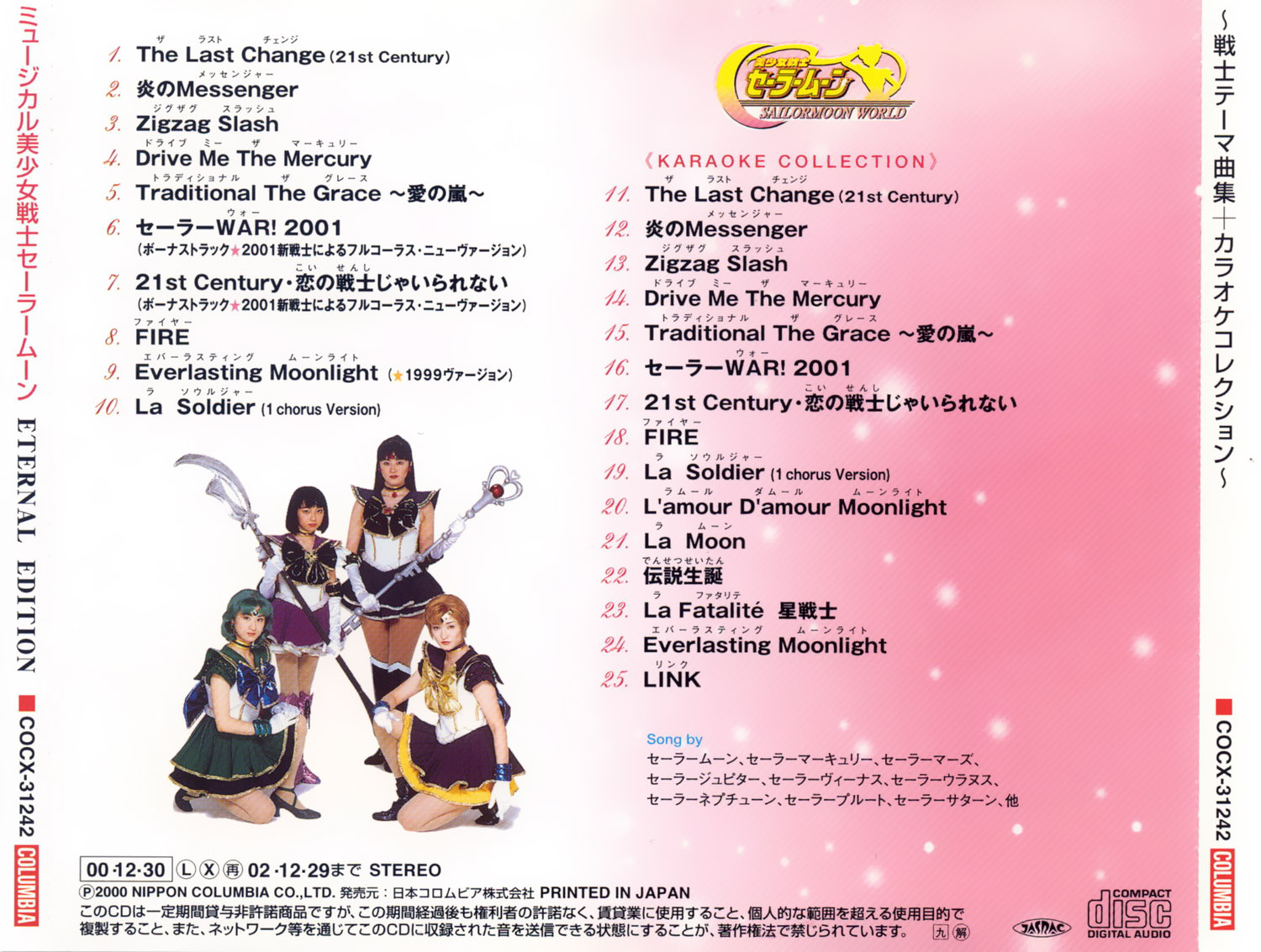 ミュージカル美少女戦士セーラームーン ETERNAL EDITION 戦士テーマ・ソング+カラオケ・コレクション Musical Bishoujo Senshi Sailor Moon ETERNAL EDITION Senshi Theme Song + Karaoke Collection Musical Piękna wojowniczka Sailor Moon - Wieczna edycja - Motywy przewodnie wojowniczek i kolekcja karaoke |