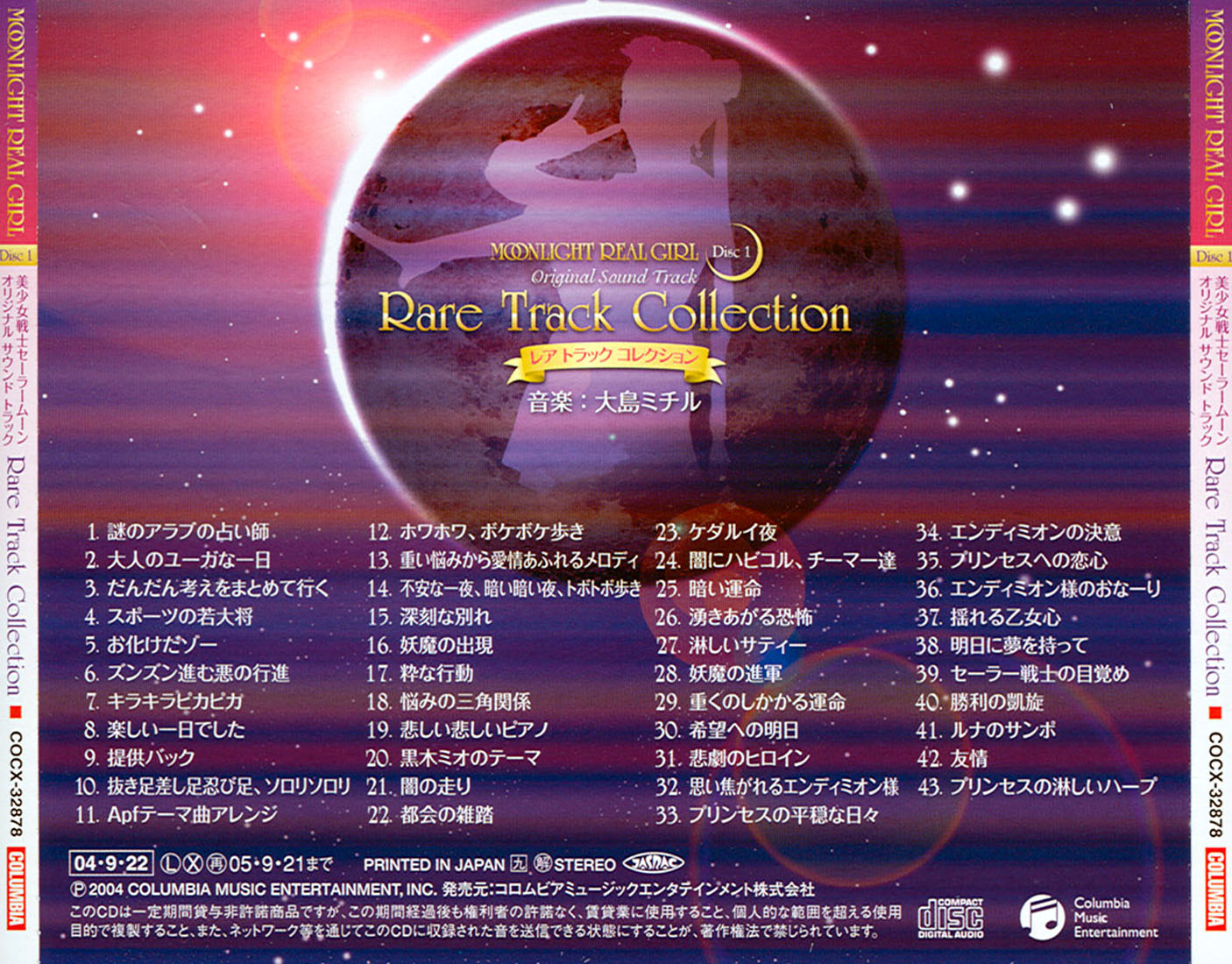 美少女戦士セーラームーン オリジナルサウンドトラック「Rare Track Collection」:Michiru Ooshima Bishoujo Senshi Sailor Moon Music Original Sound Track "Rare Track Collection": Michiru Ooshima Piękna wojowniczka Sailor Moon Oryginalne ścieżki dźwiękowe "Kolekcja rzadkich ścieżek": kompozytorka Michiru Ooshima |