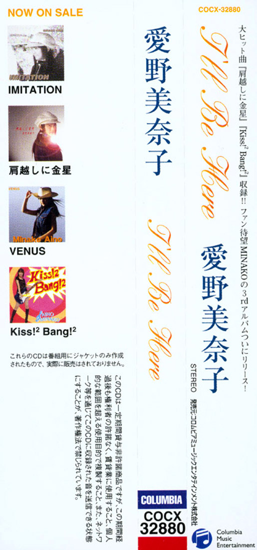 愛野美奈子オリジナルアルバム「I'll Be Here」 Aino Minako Original Album "I'll Be Here" Oryginalny album Aino Minako "Będę tutaj" |