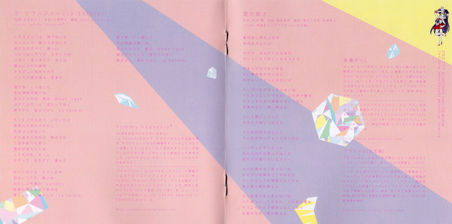Płyta wydana z okazji 20. rocznicy Sailor Moon. Znajdują się na niej piosenki z płyt z wcześniejszych lat, ale tym razem zostały zaśpiewane przez nowych wykonawców, w tym przez Momoiro Clover Z, które śpiewają opening do serii Crystal i filmów Eternal.