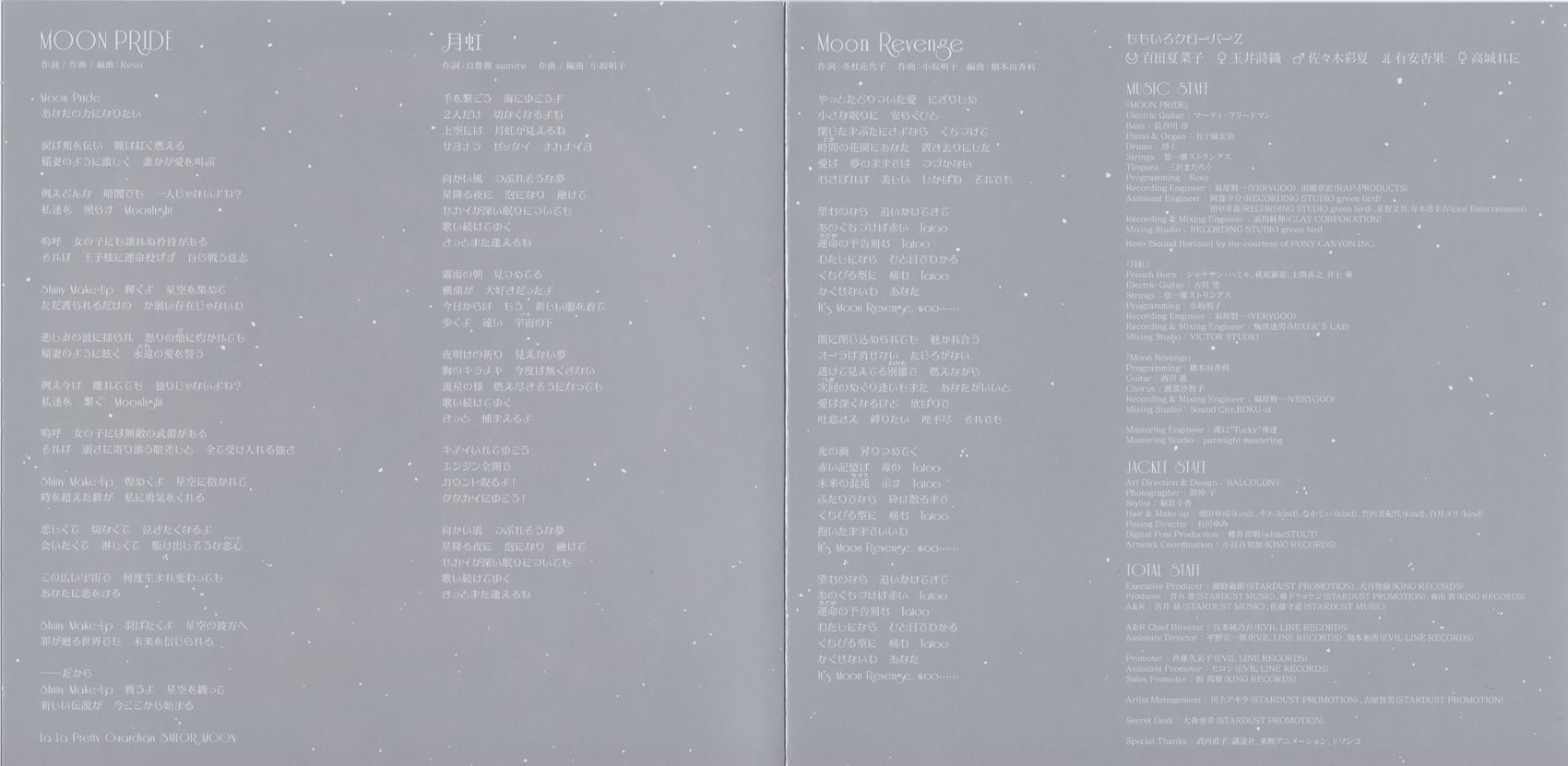 Singiel zawiera opening i ending do serii Crystal oraz piosenkę Moon Revenge, wszystkie śpiewane przez Momoiro Clover Z. Wszystkie trzy piosenki dostępne są również w wersji bez wokalu.