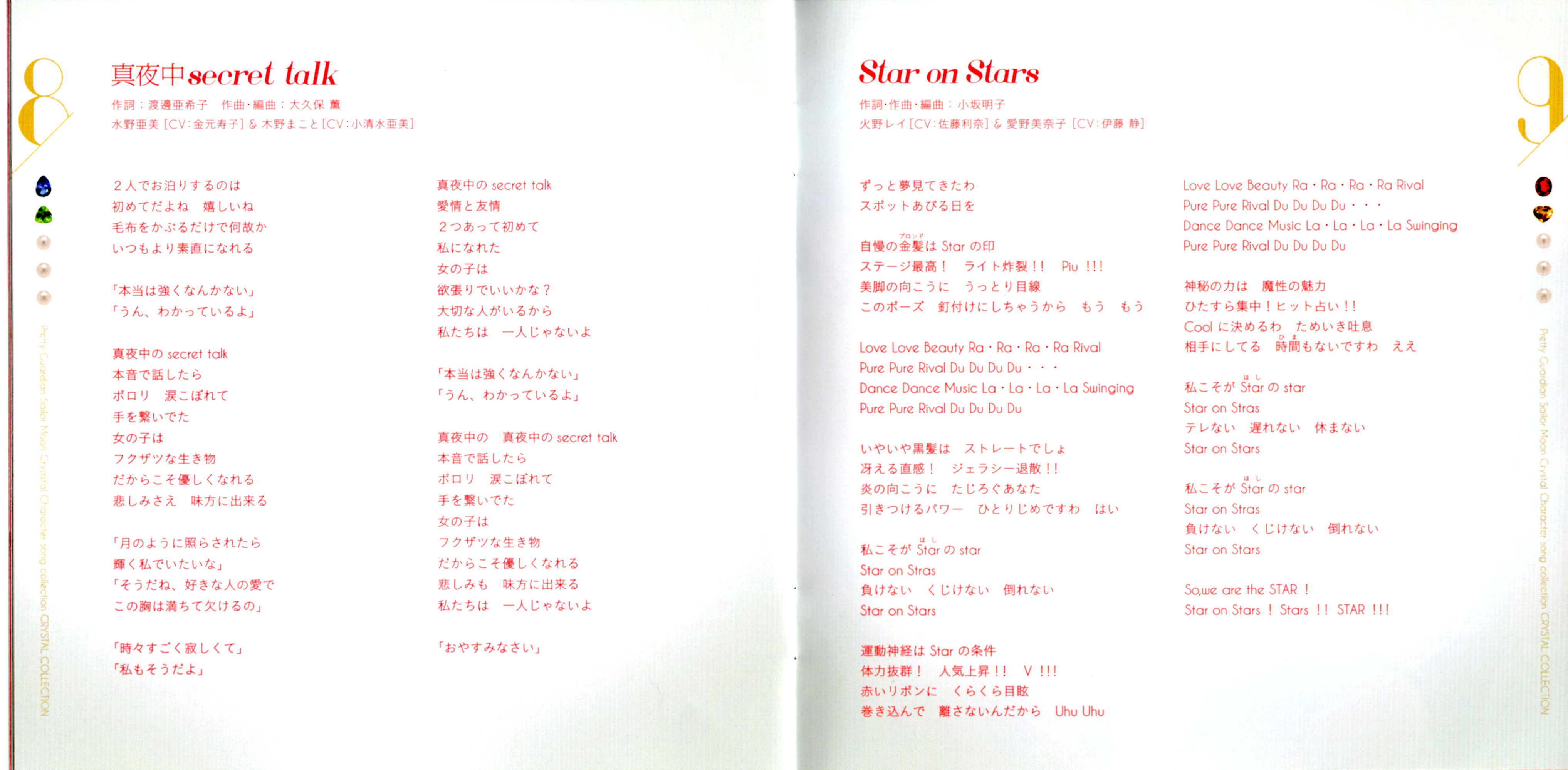 Płyta zawiera piosenki śpiewane przez postacie z serialu: inner senshi, Mamoru oraz Czterech Generałów.