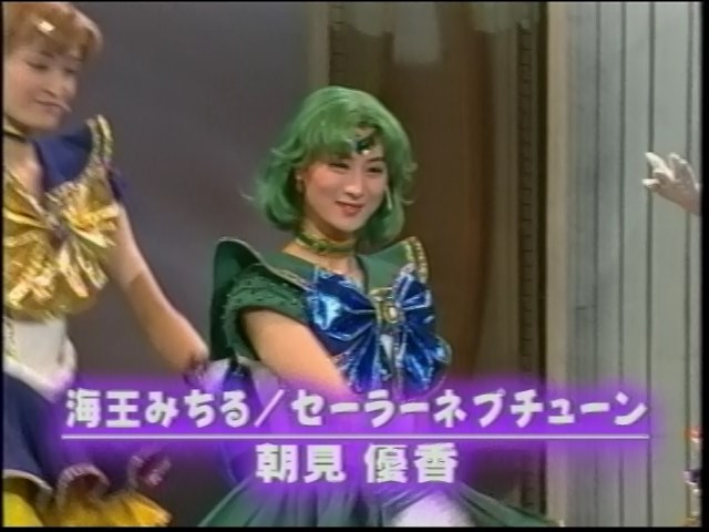 黒木マリナ, 河辺千恵子, 吉田恵, 杉本文乃, 村田あゆみ, 高木ナオ, 朝見優香, 穂坂優子, 垣内彩未 Kuroki Marina, Kawabe Chieko, Yoshida Megumi, Sugimoto Ayano, Murata Ayumi, Takagi Nao, Asami Yuuka, Hosaka Yuuko, Kakiuchi Ayami Sailor Moon, Sailor Mercury, Sailor Mars, Sailor Jupiter, Sailor Venus, Sailor Uranus, Sailor Neptune, Sailor Pluto, Sailor Saturn |