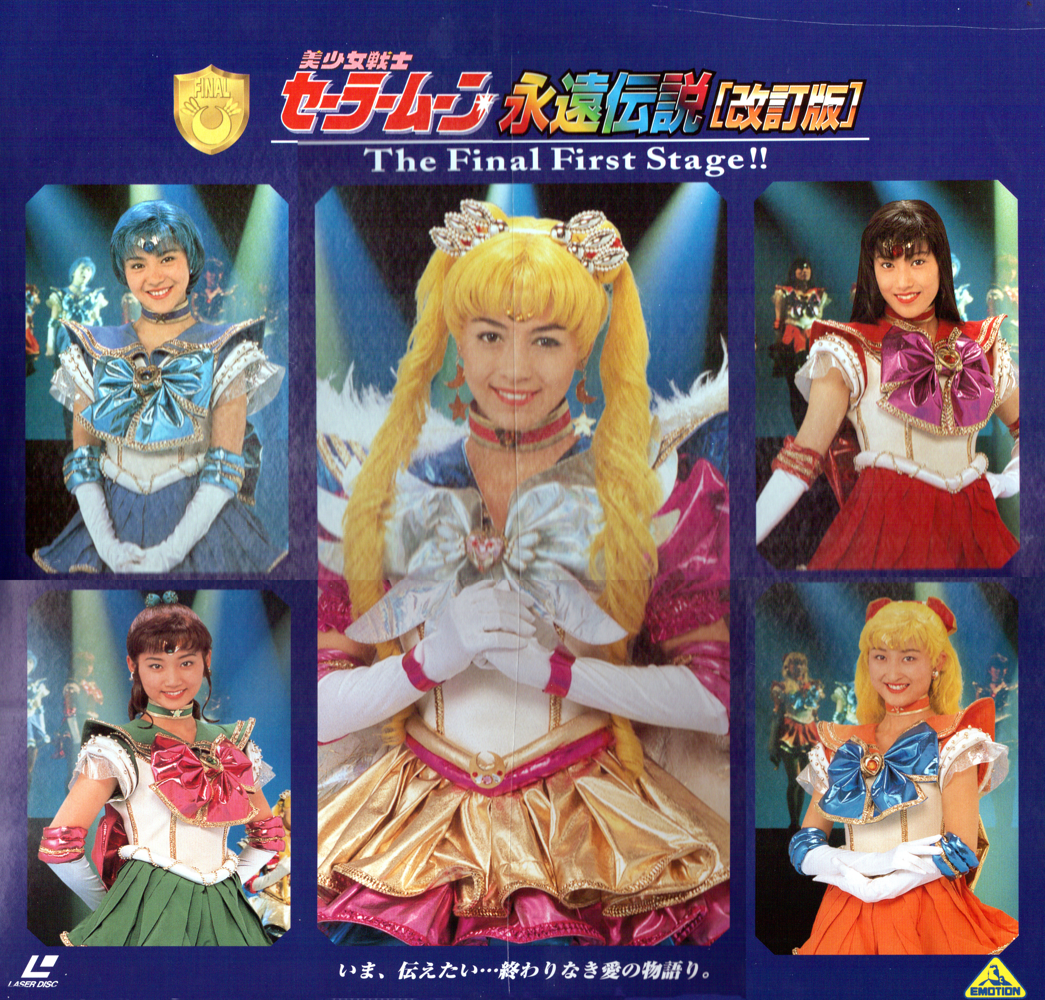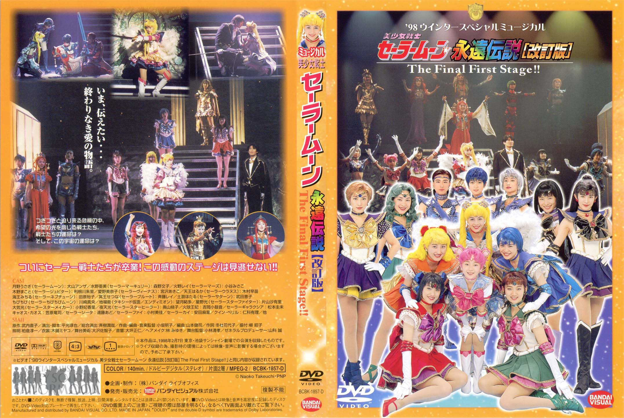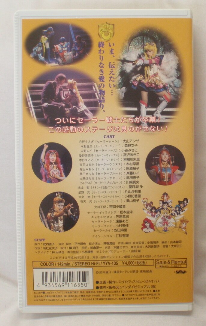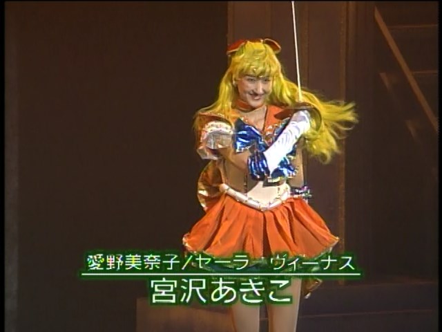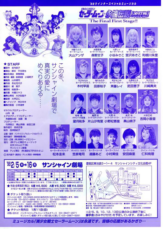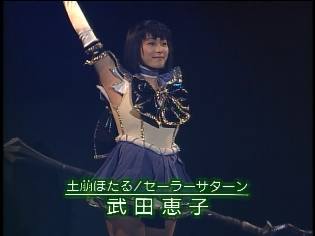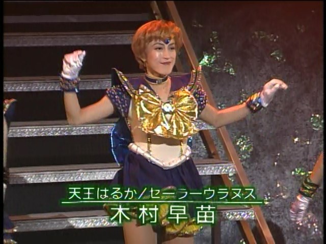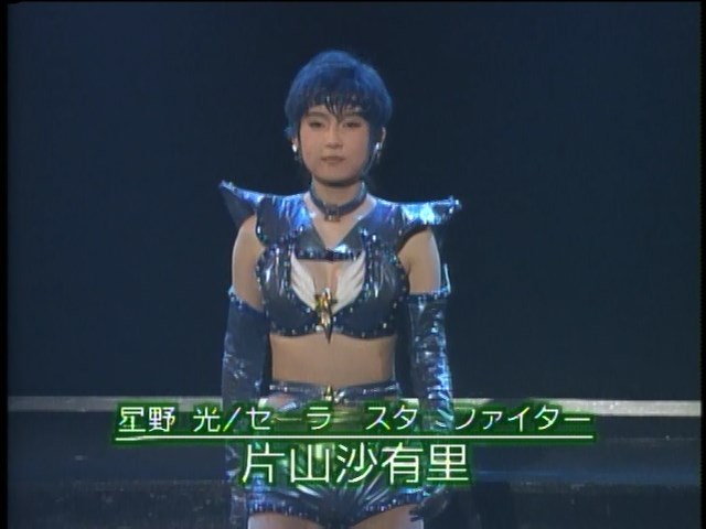 大山アンザ, 森野文子, 小谷みさこ, 利根川朱里, 宮沢あきこ, 斉藤レイ, 今井ちひろ, 木村早苗, 田原裕子, 片山沙有里, 小野妃香里, 奥山桃子 Ooyama Anza, Morino Ayako, Kotani Misako, Tonegawa Akari, Miyazawa Akiko, Saitou Rei, Imai Chihiro, Kimura Sanae, Tahara Hiroko, Katayama Sayuri, Ono Hikari, Okuyama Momoko Sailor Moon, Sailor Mercury, Sailor Mars, Sailor Jupiter, Sailor Venus, Sailor Pluto, Sailor Saturn, Sailor Uranus, Sailor Neptune, Sailor Star Fighter, Sailor Star Healer, Sailor Star Maker |