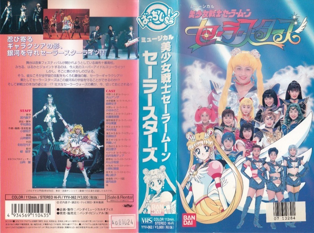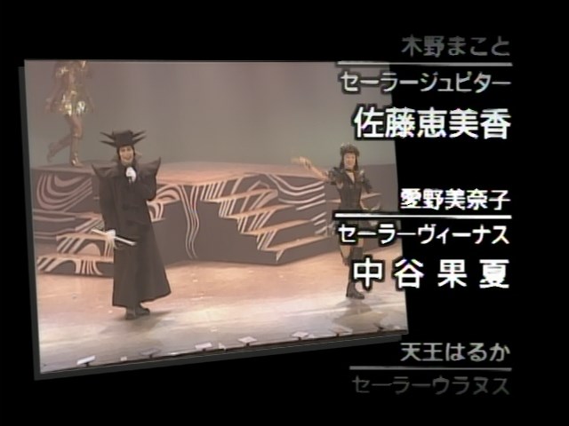 大山アンザ, 白井珠希ディア, 森野文子, 小谷みさこ, 佐藤恵美香, 中谷果夏, 木村早苗, 田原裕子, 斉藤レイ, 武田恵子, 片山沙有里, 小野妃香里, 奥山桃子 Ooyama Anza, Shirai Tamaki Dia, Morino Ayako, Kotani Misako, Satou Emika, Nakaya Kanatsu, Kimura Sanae, Tahara Hiroko, Saitou Rei, Takeda Keiko, Katayama Sayuri, Ono Hikari, Okuyama Momoko Sailor Moon, Sailor Chibi Moon, Sailor Mercury, Sailor Mars, Sailor Jupiter, Sailor Venus, Sailor Uranus, Sailor Neptune, Sailor Pluto, Sailor Saturn, Sailor Star Fighter, Sailor Star Healer, Sailor Star Maker |