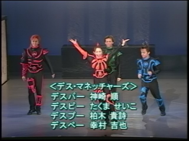 江戸英雅, 神崎順, たくませいこ, 柏木貴詩, 幸村吉也 Edo Hidemasa, Kanzaki Jun, Takuma Seiko, Kashiwagi Takashi, Yukimura Yoshiya Tuxedo Kamen, Death Pa, Death Pi, Death Pu, Death Pe |