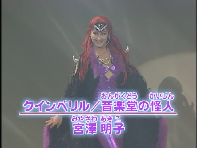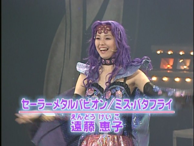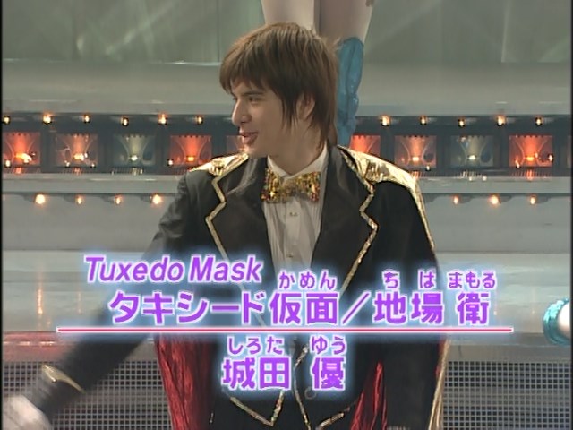 坂口祐未衣, 遠藤あど, 工藤明希, 遠藤恵子, 河崎美貴, 青木要, 依田秀亮, 朝見優香, 宮澤明子, 城田優 Sakaguchi Yumie, Endou Ado, Kudo Aki, Endou Keiko, Kawasaki Miki, Aoki Kaname, Yoda Shuusuke, Asami Yuuka, Miyazawa Akiko, Shirota Yuu Sailor Galaxia, Sailor Lead Crow, Sailor Iron Mouse, Sailor Metal Papillon, Kunzite, Zoisite, Nephrite, Jadeite, Królowa Beryl, Tuxedo Kamen |