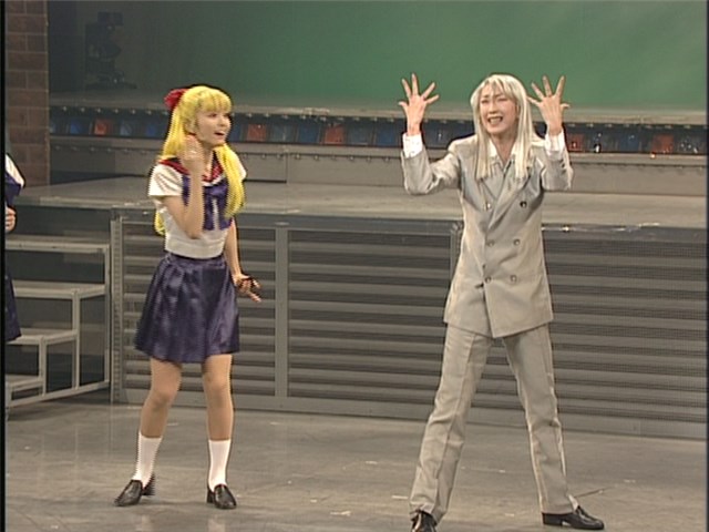 黒木マリナ, 若山愛美, かわさき愛子, 渡辺舞, 渋谷桃子, 内田亜紗子, 藺波知子, 飯塚由衣 Kuroki Marina, Wakayama Manami, Kawasaki Aiko, Watanabe Mai, Shibuya Momoko, Uchida Asako, Inami Tomoko, Iizuka Yui Usagi, Ami, Rei, Makoto, Minako, Haruka, Michiru, Hotaru |